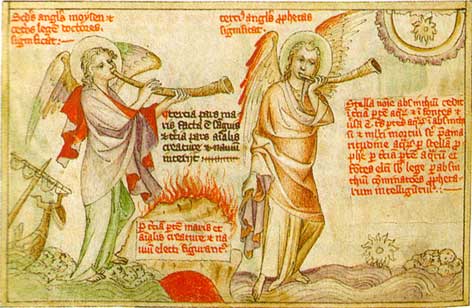 Picture-book Apocalypse with explanatory inscriptions from the commentary of Berengaudus The Second and the Third Trumpet Manuscript