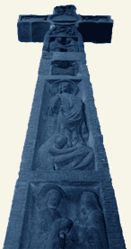 The Dream of the Rood is part of the 10th century Vercelli Book, but the text itself is older. Part of it is chiselled as runic text onto the Ruthwell Cross of Northumbria, which stems from the early eighth century. The image on the left is a photograph of the cross, and the text can be seen as lines in the frames around the reliefs. According